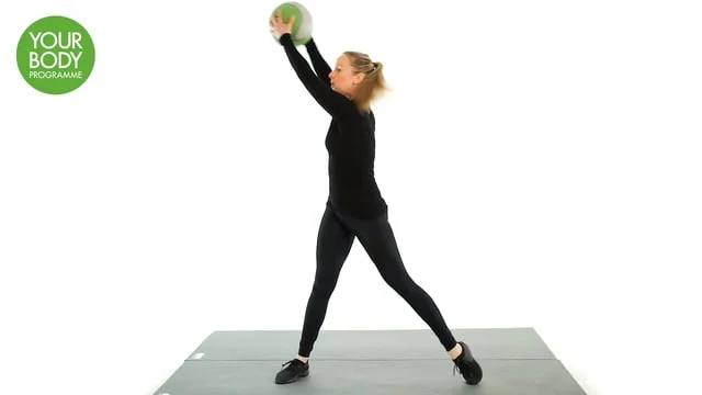Stand with the legs wide and hold a medicine ball with both hands. Side lunge and take the ball towards the foot. Push through the foot and rotate the body taking the ball in an upwards motion across the opposite shoulder. Simultaneously change the weight to the opposite foot.