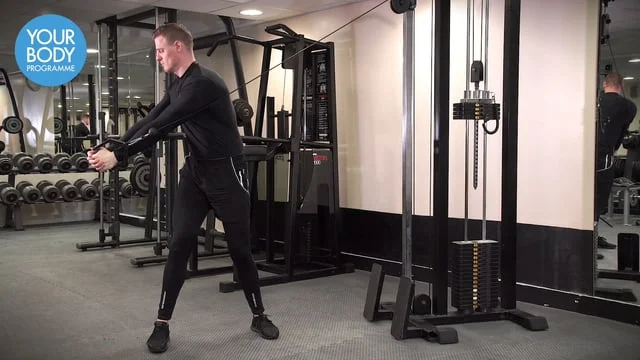 Stand side on to a low cable. Hold the handle in both hands and extend your arms with your shoulder retracted. Engage your core and rotate the torso, pulling the cable in an upwards motion across the body. Return under control.