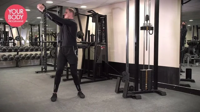 Stand side on to a high cable. Hold the handle in both hands and extend your arms with your shoulder retracted. Engage your core and rotate the torso, pulling the cable in a downwards motion across the body. Return under control.