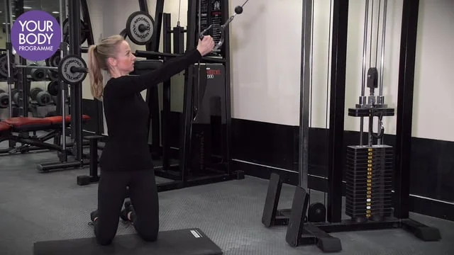 Kneel side on to a high cable. Engage your core, keep your arms lengthened and rotate the torso in a smooth downwards motion. Return under control.