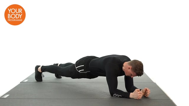 Place your weight onto your forearms and toes, raise the body. Engage your core and create a straight line from head to feet. Alternately push up onto your hands and lower back onto your forearms. As you push up the hands should replace to position of the elbows.
