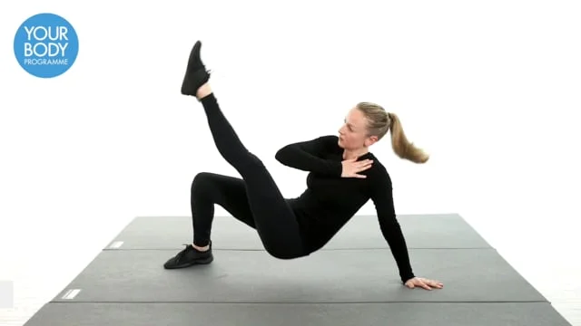 Begin on all 4s with the knees raised just off the floor. Take your weight onto 1 hand and the opposite foot and simultaneously twist the body and pass the free leg under the body. Straighten the leg then return to centre and repeat side to side. Keep the movement continuous.