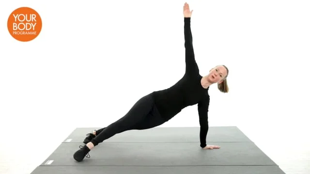 Lie on your side and place your weight onto your forearm with your shoulder directly over your elbow. Stack your feet, draw your navel to spine then continuously raise and lower the hips.