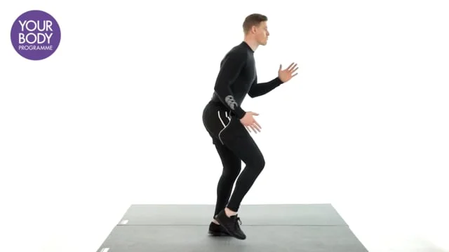 Spring from foot to foot on the spot. Do not raise the knees high, instead make the movement as small and fast as possible. Lean the body forward slightly and use the arms in a running action.