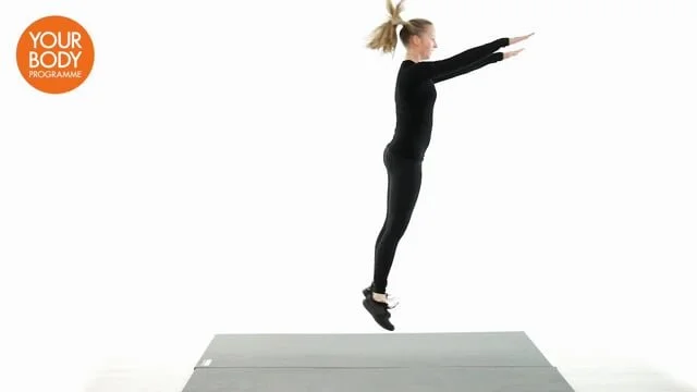 Spring from foot to foot on the spot. Bring the knee up as high as possible. Use the arms in a running action. Keep the tempo fast.