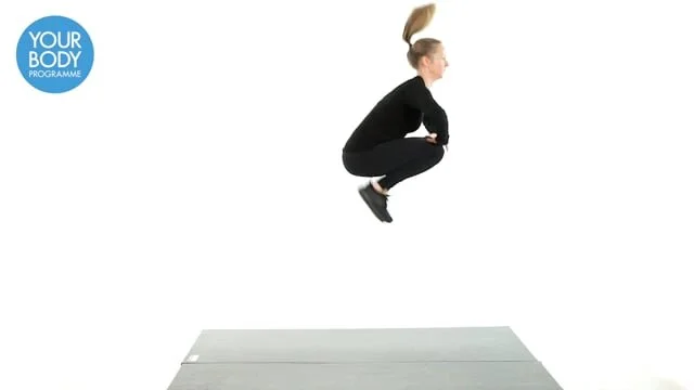 Begin standing with your feet hip width apart, bend the knees and jump as high as possible bringing your knees up to your chest. Land then prepare again.