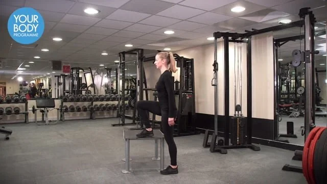 Stand side on to a high box or bench and place 1 foot on top. Push through the foot on the box to straighten the leg and hop. Lower back to the floor. Keep the movement continuous.