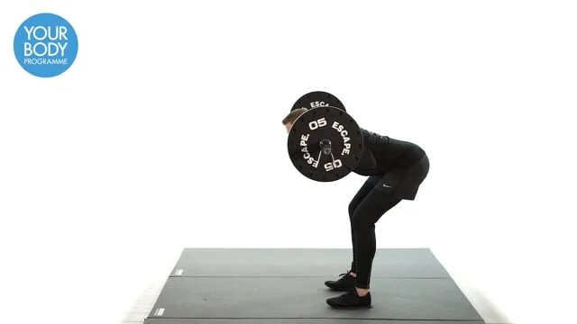 Stand feet hip width apart and hold a barbell on your shoulders. With your weight placed into your heels hinge forwards from the hips, simultaneously flex the knees slightly. Lower the torso as far as possible whilst maintaining neutral spine, do not let the lower back round. Engage the glues and stand upright.