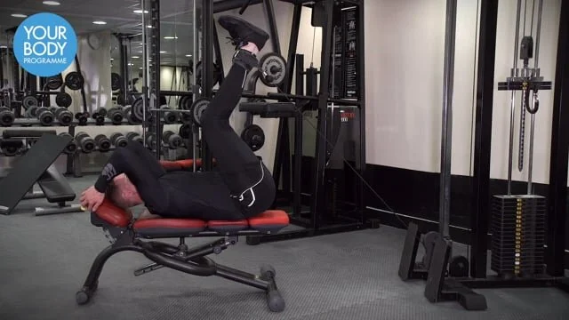 Lie on a bench with your feet attached to a low cable. Begin with your legs raised above you, slight knee flexion and hold onto the bench beside your head. Engage your core and maintain neutral. Inhale whilst you lower your legs under control. Exhale as you bring your legs back over head.