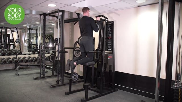 Kneel upright on the assisted pull-up machine. Take a close grip and ensure your core and glutes are engaged. Retract the shoulders and pull yourself up keeping the chest lifted. Slowly lower until your arms are fully extended.