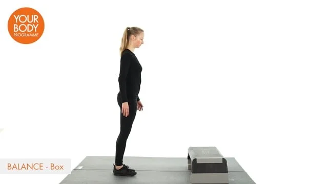 Step onto the bench with your left leg and balance for 3 seconds. over time increase to 10 seconds. Do this for 10 repetitions on each leg.