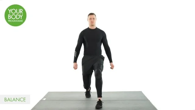 Step forward into a lunge, as you step back balance on standing leg for 3 seconds. Over time increase this to 10 seconds. Perform 10 repetitions on each leg.