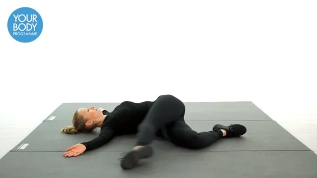 Lay flat on your front arms out to side in a cross shape.Take one leg up and over opposite leg and bend from knee. Take leg as far as is comfortable, try to touch the floor. bring back to start position and repeat on other side. Perform 10 reps for 3 sets.