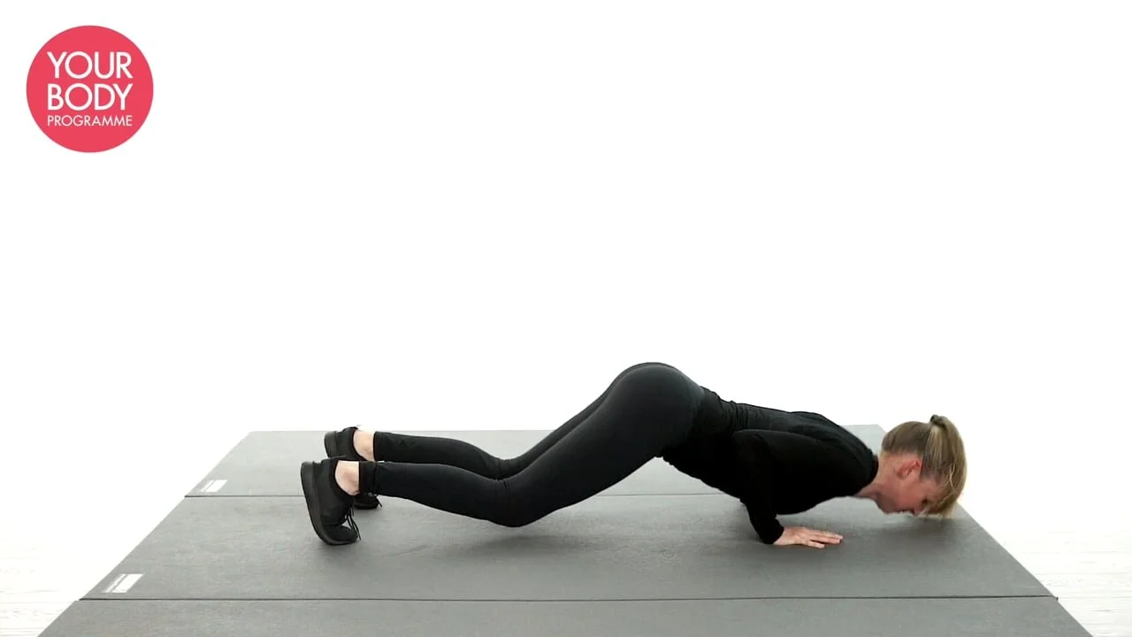 Lie prone (on your front) and place your hands beneath your shoulders. Press into the floor, straighten your arms and raise your body.